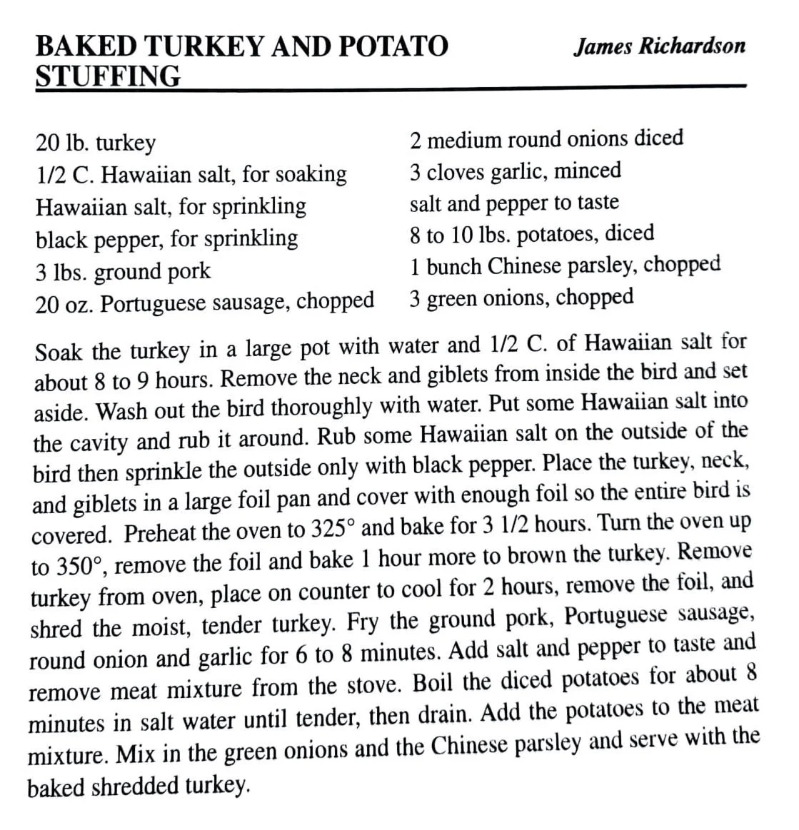 Baked Turkey with Potato Stuffing Main Dishes Nov 1 Written By Jennifer Hasegawa View fullsize Recipes Home | See All Recipes ThanksgivingWhat's Cooking at DAGS (2007) Jennifer Hasegawa