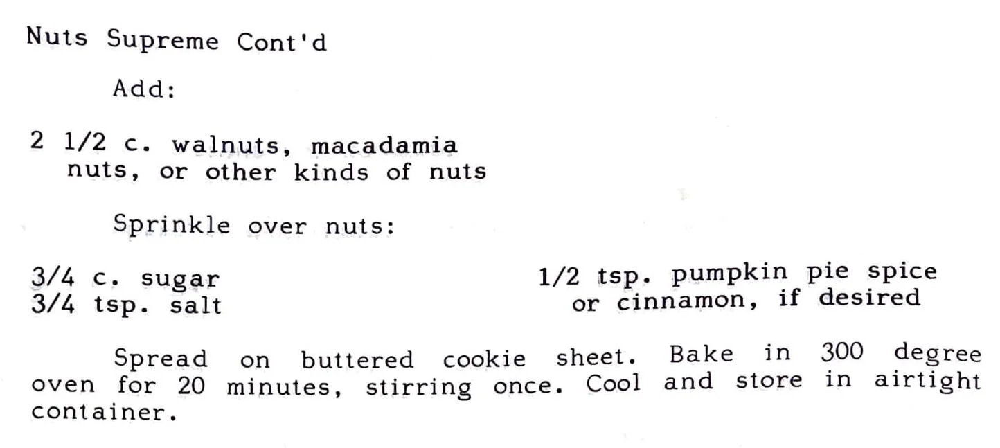 Nuts Supreme Appetizers Jan 24 Written By Jennifer Hasegawa View fullsize Recipes Home | See All Recipes A Lei of Recipes (1985) Jennifer Hasegawa