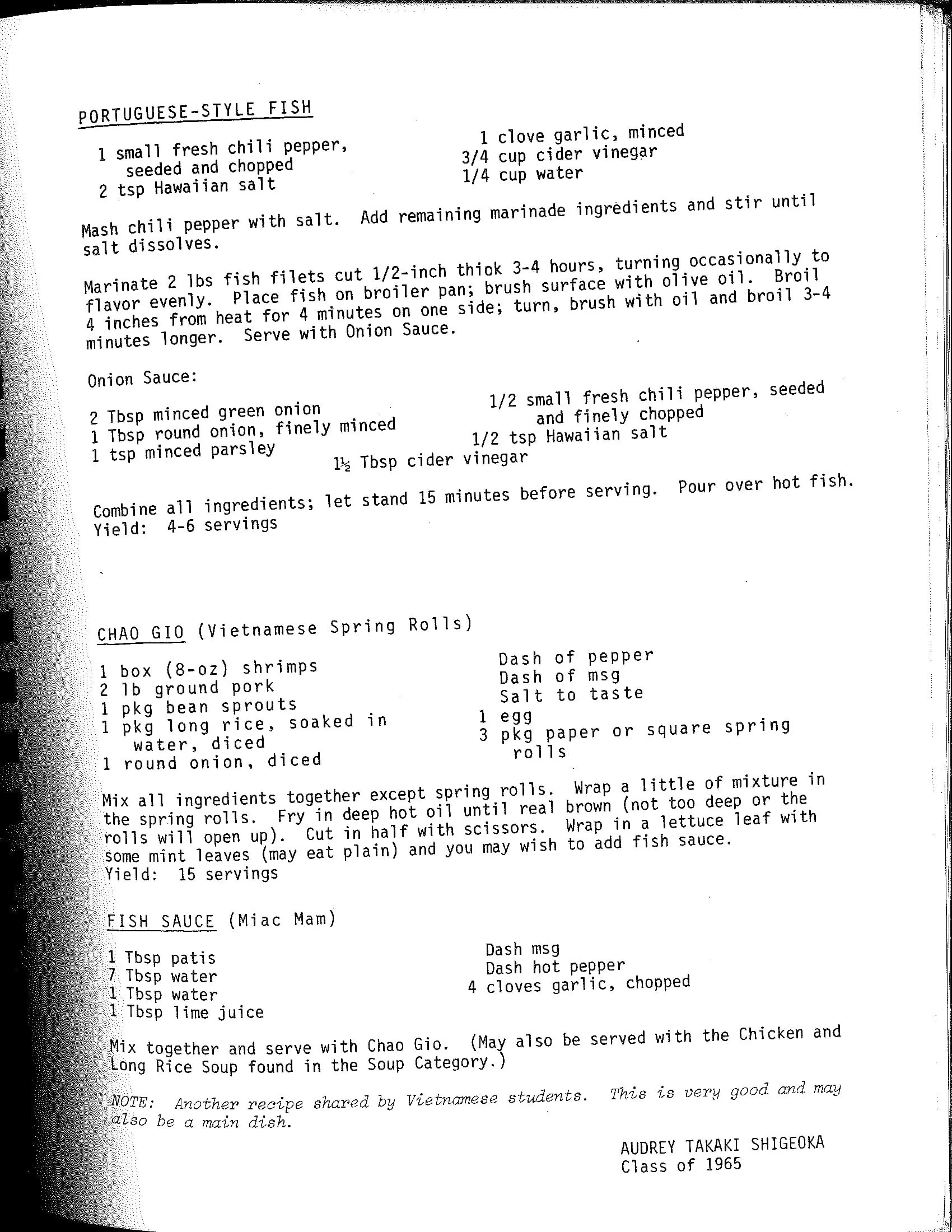 Portuguese-Style Fish Main Dishes Apr 3 Written By Jennifer Hasegawa View fullsize Recipes Home | See All Recipes The Alumni Cooks Vol. II - Hilo High School (1978) Jennifer Hasegawa