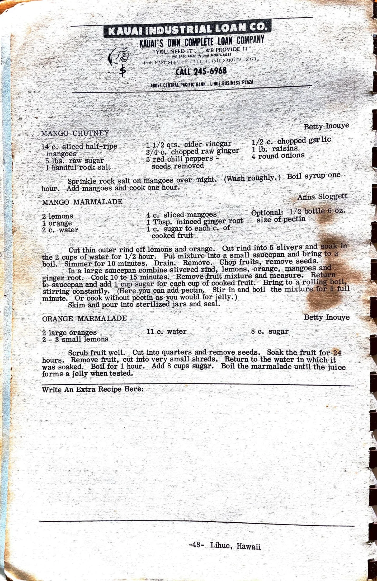 Orange Marmalade Pickles and Preserves Mar 7 Written By Jennifer Hasegawa View fullsize Recipes Home | See All Recipes Kauai Zonta Women's Cookbook (1970s?) Jennifer Hasegawa