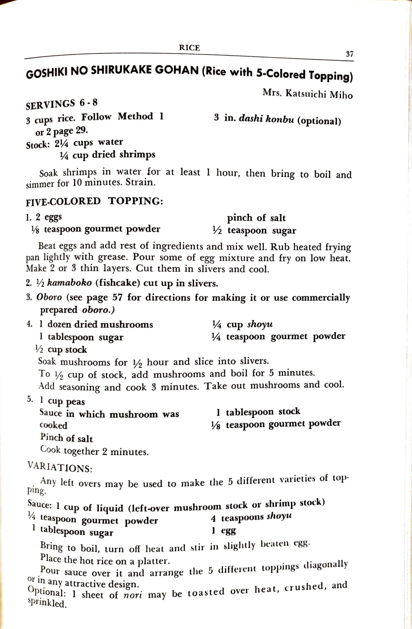 Goshiki No Shirukake Gohan (Rice With 5-Colored Topping) Rice Dishes Jan 2 Written By Jennifer Hasegawa View fullsize Recipes Home | See All Recipes JapaneseJapanese Foods - Hui Manaolana (1951) Jennifer Hasegawa